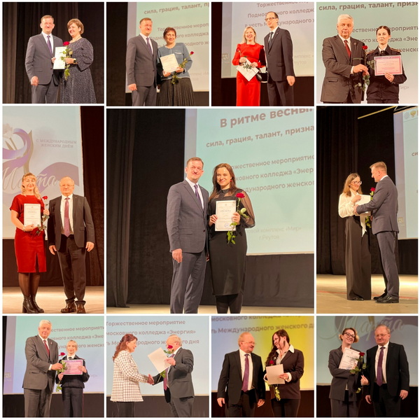 Преподавательниц и студенток колледжа поздравили заместители Генерального директора Военно-промышленной корпорации: председатель Московского областного РО СМР Валерий Бунак и первый зампредседателя Антон Дегтярев, член Регионального совета РО, директор «Энергии» Константин Подоляк, а также депутат Мособлдумы Тарас Ефимов и замглавы Реутова Оксана Рогачева-Маслова.