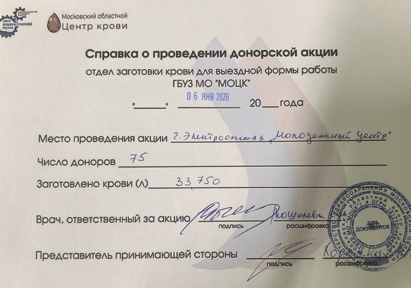 На мобильный пункт заготовки, развернутый в Молодежном центре, прибыли 75 человек. Они пожертвовали 33,75 л крови, которая будет использована для лечения хирургических и онкобольных, пострадавших от кровопотери рожениц, раненых бойцов СВО и гражданских.
