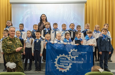 Советник генерального директора Корпорации «Тактическое ракетное вооружение», председатель корпоративного отделения СоюзМаш генерал-лейтенант Владимир Бугреев принял участие в церемонии посвящения первоклассников городской гимназии № 9 в ряды «Орлят России». Он поздравил ребят и пожелал им быть дружными, хорошо учиться, любить свою Родину.