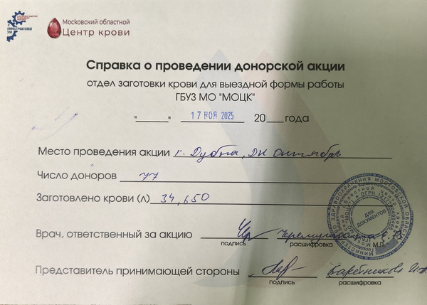 17 ноября сотрудники АО «ГосМКБ «Радуга» им. А.Я. Березняка» приняли участие в Дне донора, который провели в Дубне Московский областной центр крови и Московское областное РО СоюзМаш. Подобные акции регулярно проходят в разных муниципалитетах в рамках программы «Корпоративный донор Подмосковья».