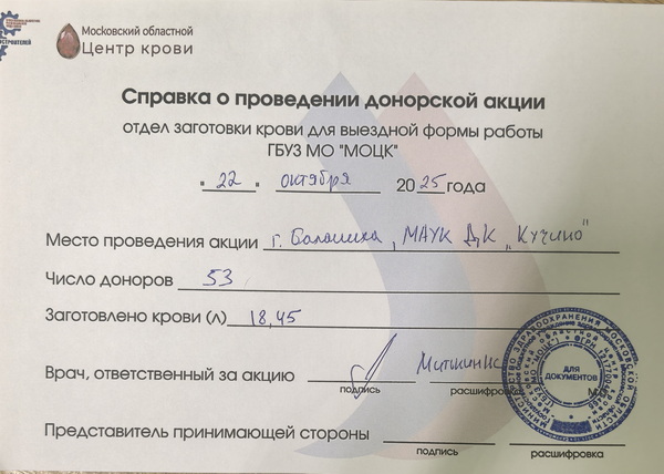 22 октября в Балашихе прошел День донора, организованный Московским областным РО СоюзМаш и Московским областным центром крови в рамках программы «Корпоративный донор Подмосковья».